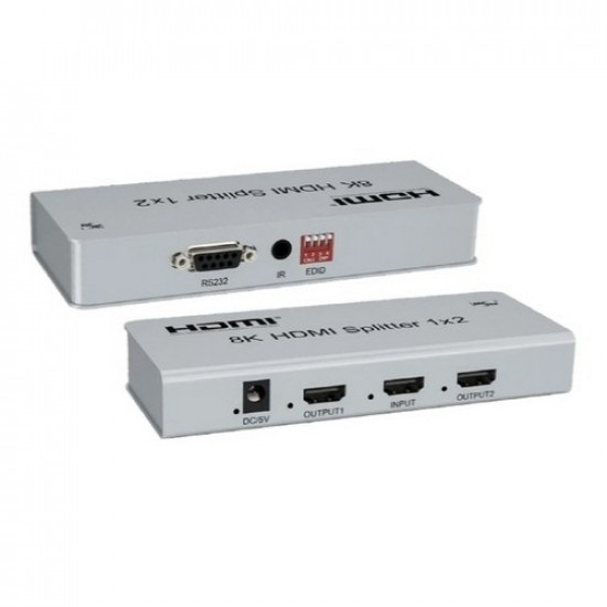 분배기(1:2) / 입력단자:HDMI / 1개 / 출력단자:HDMI / 2개 / 외부전원필수 / 어댑터포함 / 수동EDID / [비디오 성능] / HDMI 2.1 / 8K@60Hz / HDR / HDR10 / HDCP / 3D영상 / eARC